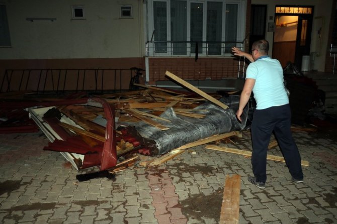 Yozgat’ta fırtına çatıyı aracın üzerine uçurdu, o anlar güvenlik kamerasına yansıdı