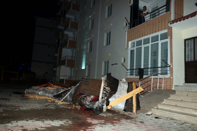 Yozgat'ta akşam saatlerinde sağanak yağış ve fırtına etkili oldu. Fırtına nedeniyle Çapanoğlu Mahallesi'nde Zararsız Güneşevleri Apartmanı'nın çatısının bir kısmı uçtu. Kopan parçalar içerisinde bir ailenin olduğu aracın üzerine düştü. Kopan çatı parçaları araçta maddi hasar oluştururken araç içerisindeki ailenin panik anı apartmanın güvenlik kamerasına yansıdı.