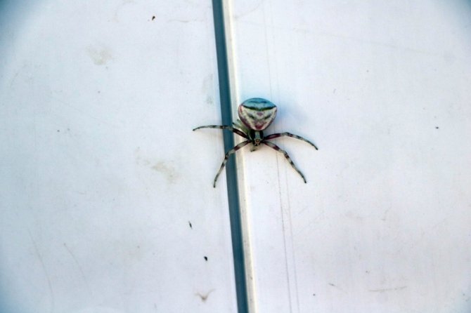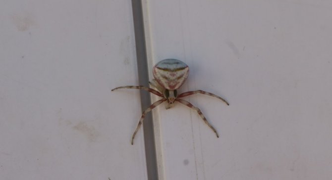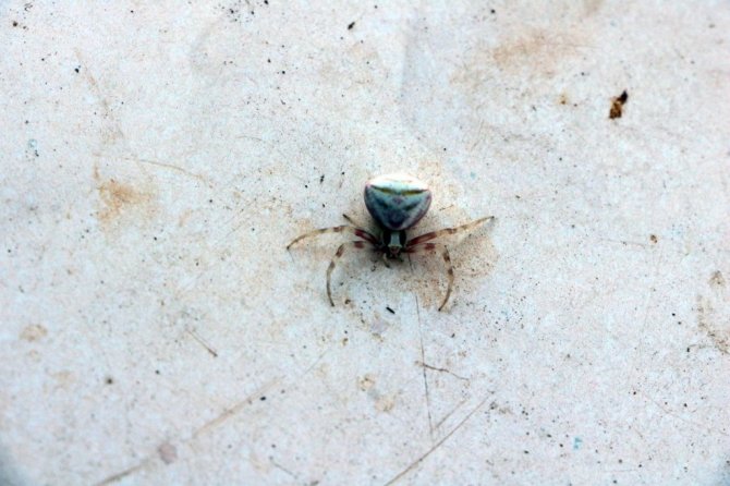 Yozgat'ta halk arasında insan yüzlü örümcek olarak da bilinen köşeli yengeç örümceği (Thomisus onustus) görüntülendi.