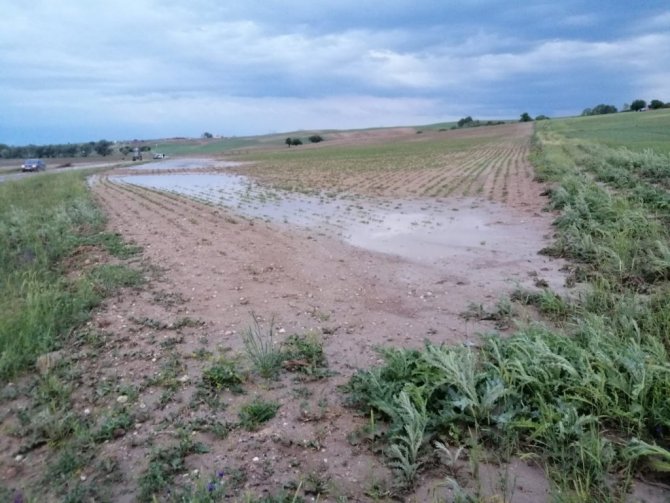 Çiftçi İlhami Açıkyürek ise "250 dekar pancarım, 200 dekar nohudum vardı, hepsi yok oldu. Evlerimizin çatısı uçtu. Pancarlarımız, ekinlerimiz gitti, su motorlarımız gitti mağduruz" şeklinde konuştu.