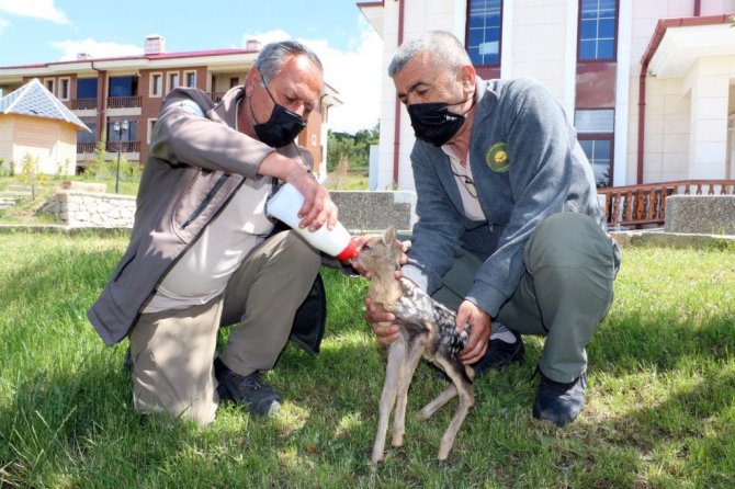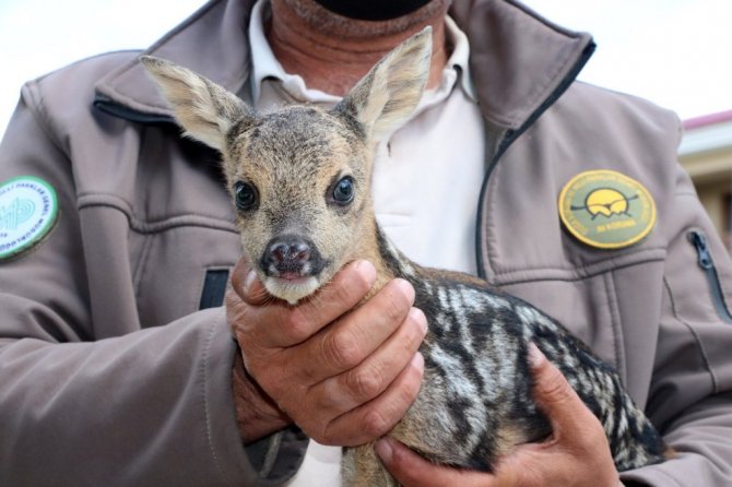 Yozgat'ın Çekerek ilçesinde çobanların arazide bulduğu yeni doğmuş karaca yavrusu, koruma altına alındı.
