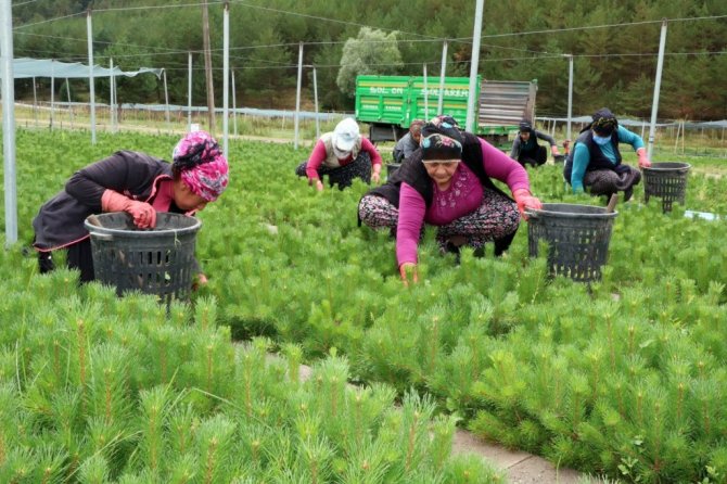 20'ye yakın fidan çeşidinin bulunduğu tesiste 20 kadın işçi çalışırken bu sayı zaman zaman 50'ye kadar çıkıyor. Günlük yevmiye ile çalışan kadınlar, ev ekonomilerine de katkıda bulunuyor. İşletmede üretilen milyonlarca fidan, birçok bölgeye gönderilirken ülkenin de yeşillenmesine katkı sağlıyor. İlçede bin bir emekle yetiştirilen fidanlar, yanan ormanların tekrardan yeşillendirilmesi için de umut oluyor.