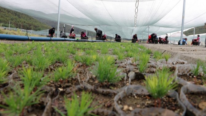 Fidan üretiminde çalışan işçi Kadriye Doğan ise, "Biz burada fidan üretiyoruz, fidanların bakımını yapıyoruz, çapasını yapıyoruz. Geçimimizi buradan sağlıyoruz. İnşallah burada ürettiğimiz fidanlarımız Türkiye genelinde kullanılacak. Büyüyecek ağaç olacak. Yangın bölgelerine göndereceğiz" şeklinde konuştu.