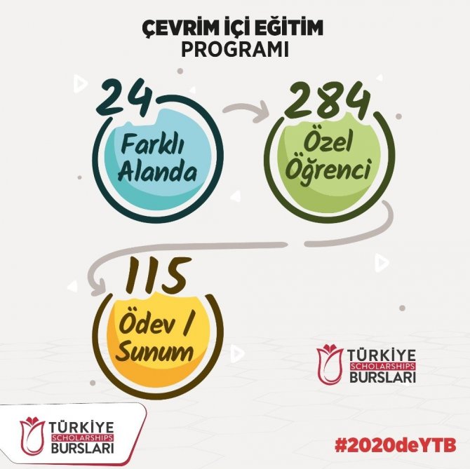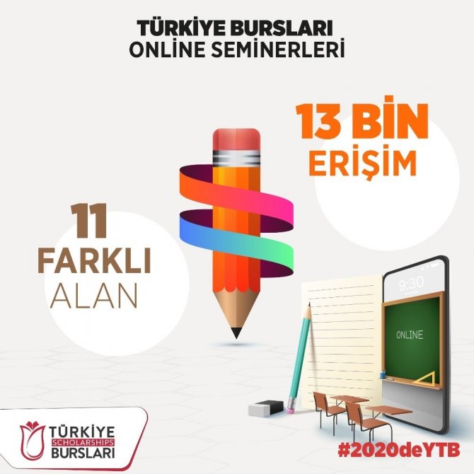 Alanında uzman eğitimcilerin katılımıyla Türkiye'deki tüm uluslararası öğrencilerin istifadesine sunulmak üzere hazırlanan "Türkiye Bursları Online Seminerleri" de 2020 yılında geniş katılımla yapıldı. Bu çerçevede "Türk Edebiyatı, Yazı ve Süsleme Sanatları, Sanat, Tarih, Fotoğrafçılık ve Yapay Zeka" başta olmak üzere farklı alanlarda 11 program icra edildi. Söz konusu programlara 12 bin 898 kişi katıldı.