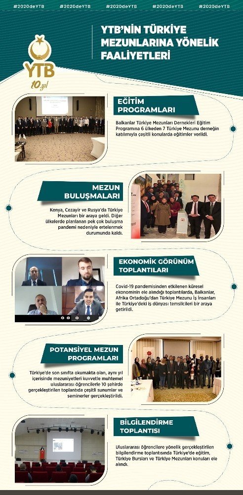 Yurtdışı Türkler ve Akraba Topluluklar Başkanlığı (YTB), 2020 yılında Türkiye'de eğitim alan uluslararası öğrenciler ve eğitimlerini tamamlayarak ülkelerine dönen Türkiye mezunlarının kişisel gelişimlerine katkı sunmak ve başarılı çalışmalarını desteklemek için eğitim ve mali destek programları hayata geçirdi.
