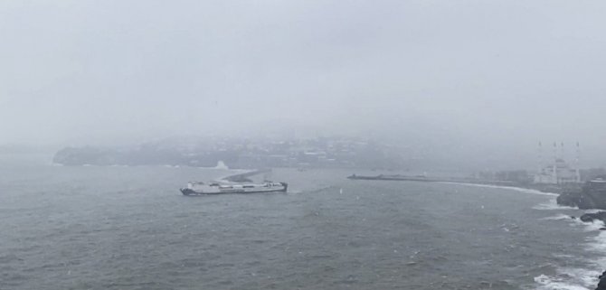 Zonguldak'ta dev dalgalar nedeniyle yük gemileri limana demir atmakta zorluk çekti.