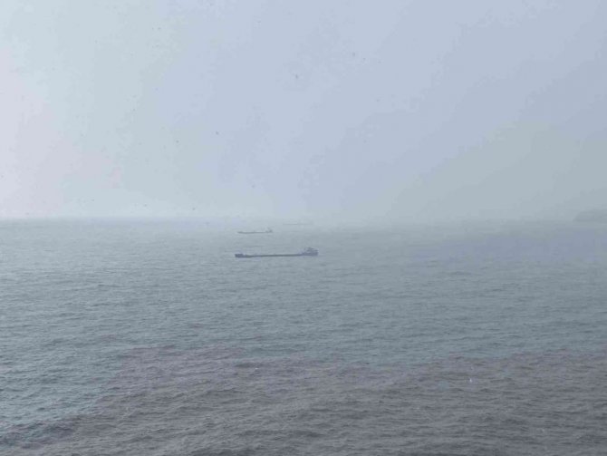Dev dalgalar nedeniyle açıkla duran yük gemileri limana yaklaşmakta zorluk çekti.