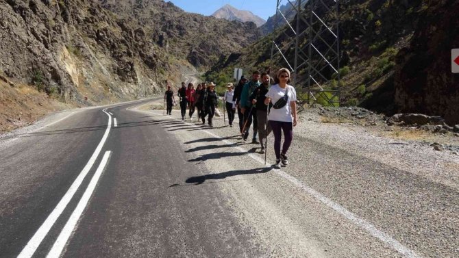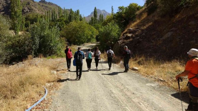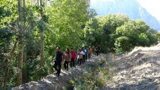 Hakkari ve ilçelerini her hafta gezerek tanıtan Yüksekova Ekoloji Kültürel ve Dağcılık Spor Kulübü Derneği üyeleri, ilk olarak saklı cennet olarak anılan sarkıt ve dikitli mağarasını gezdikten sonra bölgenin yüksek kesimlerinde doğa yürüyüşü gerçekleştirdi. Her hafta 20 kişilik bir ekiple bölgenin güzelliklerini keşfettiklerini belirten Hekim Kaçan isimli dağcı, "Bu hafta 20 kişilik ekibimizle ilk olarak mağarayı gezdik. Tarihi su değirmeni ve taş evlerini gezdikten sonra arkadaşlarımızla birlikte güzel bir doğa yürüyüşü yaptık. Bunun yanında köyde doğa ile ilgili bilinçlendirme çalışması yaptık. Yüksek rakımda çöp temizleyerek, bir farkındalık oluşturmaya çalıştık" dedi.