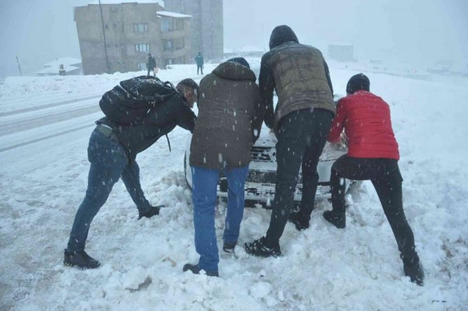 Hakkari'nin Yüksekova ilçesinde sabah saatlerinde etkisini artıran kar yağışı nedeniyle araçlar kara gömülürken, vatandaşlar ise işe yaya olarak gitmek zorunda kaldı.