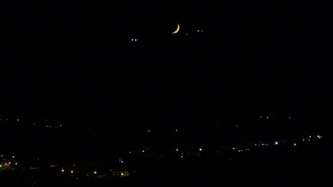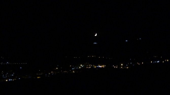 Hakkari'nin Yüksekova ilçesinde şehrin semalarında çıkan hilal şeklindeki ay mest etti.