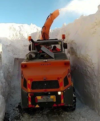 Yüksekova ilçesi merkezinin yüksek kesimlerinde bulunan yollarda yoğun kar yağışı ve tipi nedeniyle kar kalınlığı iş makinelerinin boyunu geçti. Kapalı yolların açılması için Karayolları 117. Yüksekova Şube Şefliği ekipleri çalışmalarını aralıksız sürdürüyor. 6 metreyi geçen kar kalınlığında ekipler zorlukla ilerliyor. Özellikle yüksek kesimlerde yaşayan vatandaşın mağdur olmaması için gece gündüz çalışma yürüten ekiplerin açtığı yollar ise adeta tünelleri andırdı. Tünelleri andıran yolları görenler şaşkınlıklarını gizleyemezken, bazı vatandaşlar hatıra fotoğrafı çektirdi.