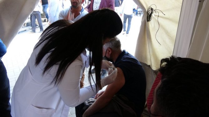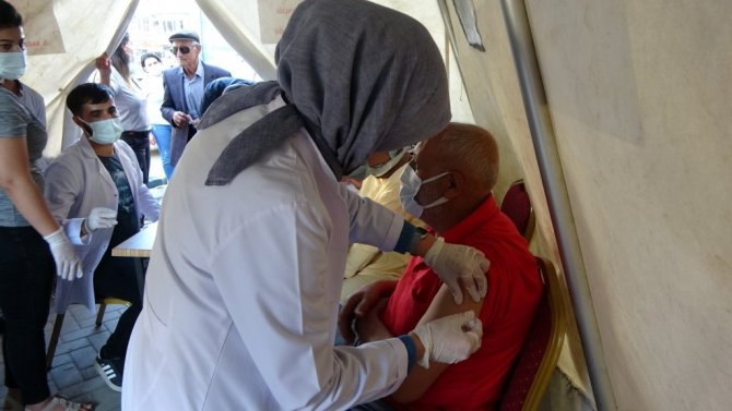 Hakkâri'nin Yüksekova ilçesinde vatandaşlarının rahatça aşılarını yapması için kurulan çadıra vatandaşlar yoğun ilgi gösteriyor.