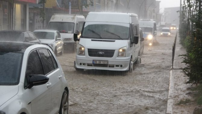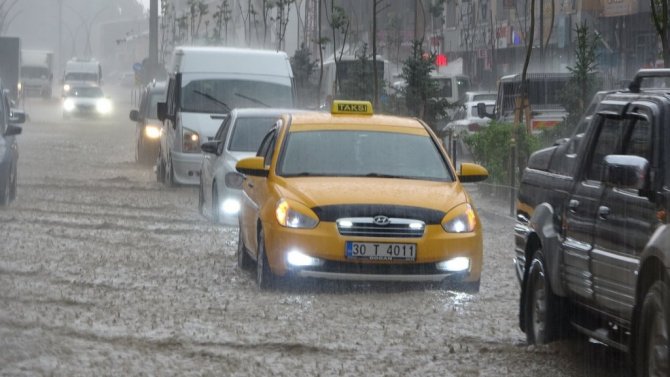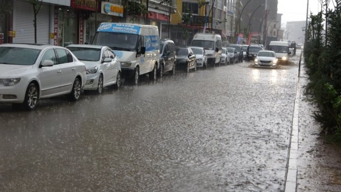 HAKKARİ (İHA) – Hakkari'nin Yüksekova ilçesinde aniden bastıran sağanak yağış caddeleri gölete çevirirken, araçlar ise adeta suya gömüldü.
