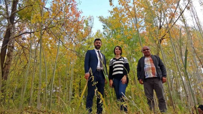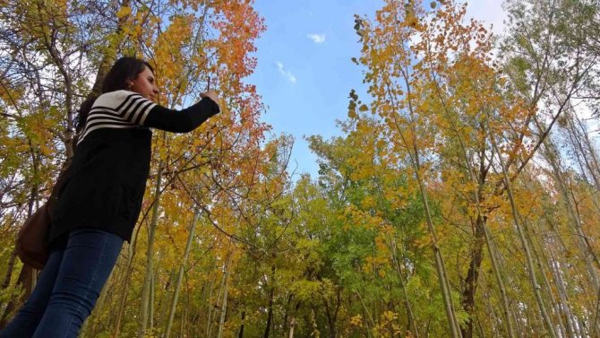 Hakkari'nin Yüksekova ilçesinde sonbaharla renk cümbüşüne bürünen ağaçlar mest etti.