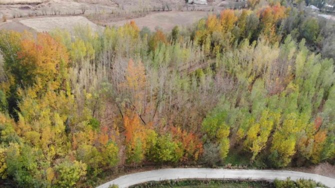 Yüksekova ilçesinde sonbaharla sararan ağaçların ortaya çıkardığı rengarenk görüntüler doyumsuz manzaralar oluşturuyor. İlçenin Karabağ, Karlı ve Gürdere köylerinde sonbaharla sararan ağaçlar adeta renk cümbüşüne dönüşürken, o rengarenk anlar ise havadan görüntülendi. O anı ölümsüzleştirmek isteyenler, renk cümbüşüne dönen bölgeyi ziyaret ederek bol bol fotoğraf çektiriyor.