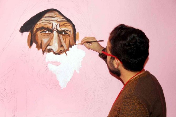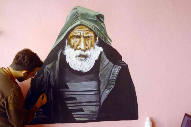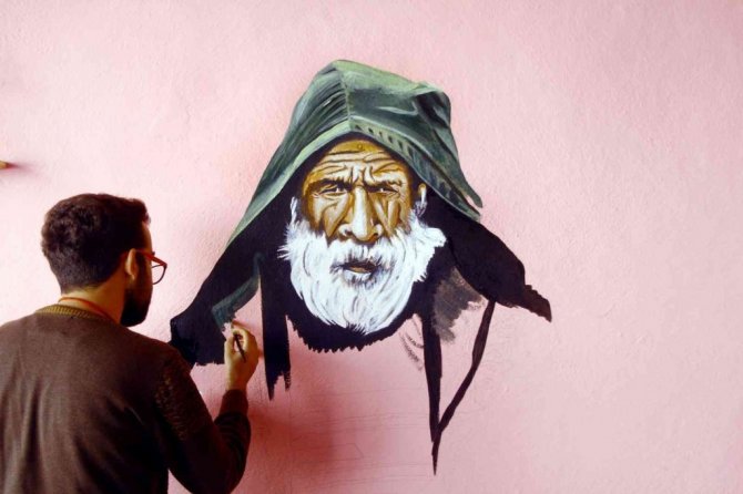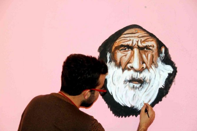 Hakkari'nin Yüksekova ilçesinde yaşayan ressam Ümit Bartın, kentin sevilen simalarını duvarlara işliyor.