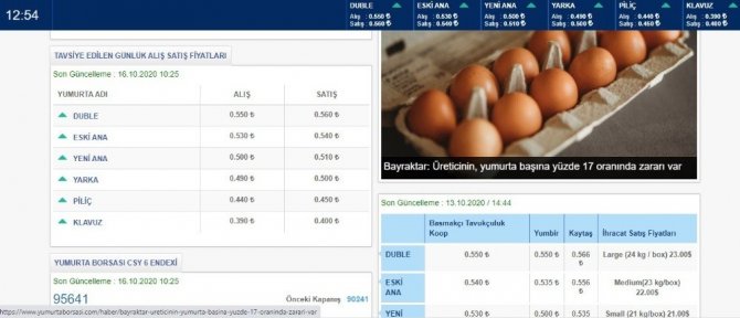 Türkiye’nin yumurta fiyatlarının belirlendiği Afyonkarahisar’ın Başmakçı ilçesinde yumurtanın tane fiyatı büyüklük ve kalitesine göre 40-56 kuruş arasında değişiyor. Fiyatlara son 1 ayda neredeyse yüzde 30 zam geldiği öğrenilirken, kentte yumurtanın marker ve şarküterilerdeki koli fiyatı ise 16-20 TL arasında değişiyor. Yumurtanda yaşanan önlenemez fiyat artışı ile ilgili fiyatlarının belirlendiği ve adeta Türkiye’nin yumurta borsası konumundaki Başmakçı ilçesindeki kooperatifler ve birlikler ise fiyatlarda yaşanan artışla ilgili açıklama yapmaktan kaçınılıyor. İhlas Haber Ajansı (İHA) muhabirlerinin sorularını yanıtsız bırakan kooperatif ve birlik yöneticileri sadece fiyatların yükselmesinin nedeninin kendileri yani üreticiler ile alakalı olmadığını savundular.