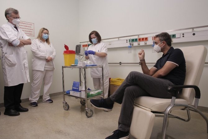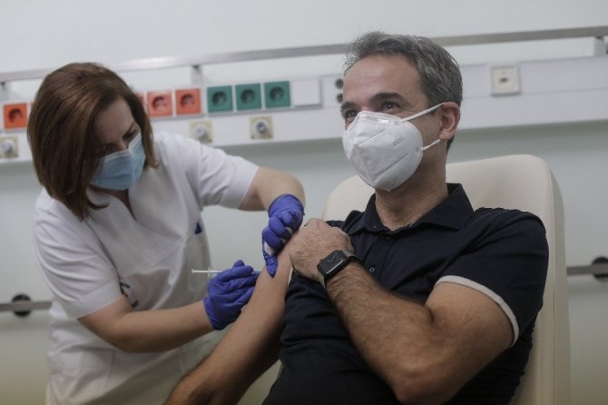 Yunanistan Başbakanı Kiryakos Miçotakis, yeni tip korona virüs (Covid-19) aşısı yaptırdı.
