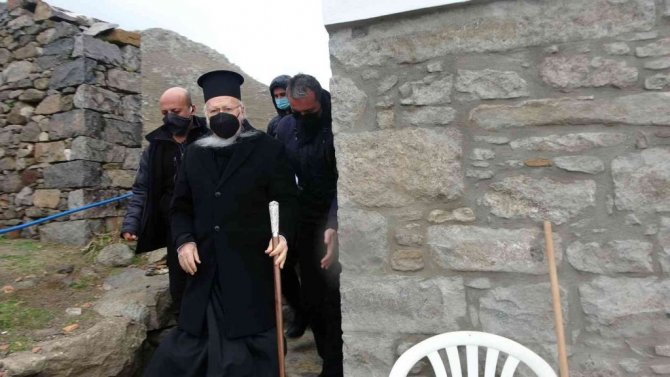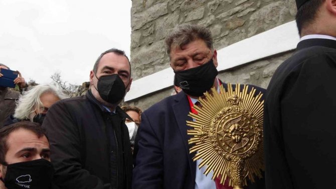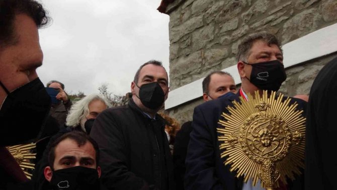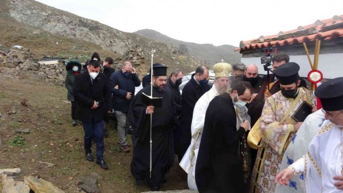 İncil'den bölümlerin okunup, duaların edildiği ayine; Yunanistan Dışişleri Bakan Yardımcısı Andreas Katsaniotis ile Fener Rum Patriği Bartholomeos ve Gökçeada'da yaşayan Rum cemaati katıldı.