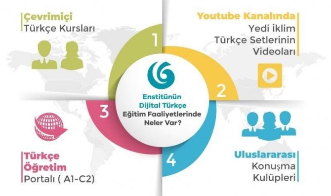 Yunus Emre Enstitüsü, bütün dünyadaki dil ve kültür faaliyetlerine ara vermeden devam ediyor. Enstitü bu zor dönemde Türkçeye öğrenmek için artan talebi karşılamak adına dünya genelinde çevrimiçi Türkçe kursları düzenliyor. Çevrimiçi kurslarla hem Enstitünün çok sayıda ülkedeki örgün eğitim programları devam ediyor hem de daha önce Türkçe kursu açılmayan ülkelerde binlerce kişiye ulaşılıyor. Ayrıca bu sayede Türkçe kursuna gitme imkanı bulmayan fakat Türkçe öğrenmek isteyen kişilere de ulaşılmış oluyor. Her yaştan katılımcının olduğu Türkçe kursları, yeni dostluklara zemin hazırlıyor. Türk kültürünün sevgi ikliminde gerçekleşen Türkçe öğretim faaliyetleri, ülkeler arası dostluk bağlarının da güçlenmesine vesile oluyor. Enstitünün dijital Türkçe öğretim faaliyetleri arasında farklı seviye ve beklentilere uygun kurslar ve programlar bulunuyor.