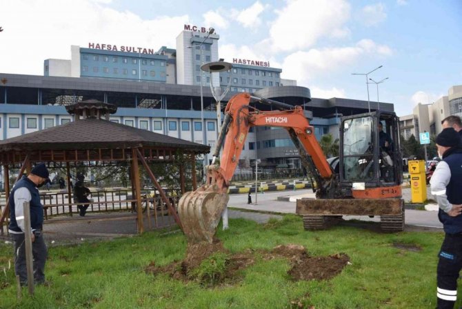 Yunusemre Belediyesinden Manisa CBÜ Hafsa Sultan Hastanesinde ağaçlandırma