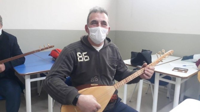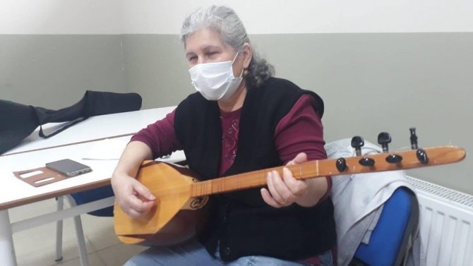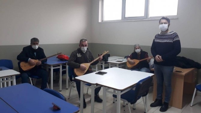 Yunusemre Belediyesi TOKİ 2 Kültür ve Sanat Merkezi'nde kursiyerler pandemi kurallarına uyarak bağlama çalmayı öğreniyor.