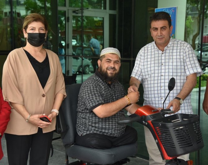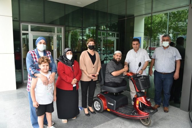 Yunusemre Belediyesi, yakalandığı amansız hastalık yüzünden yürüme engelli olan Eşref Korola'ya akülü motosiklet temin etti.