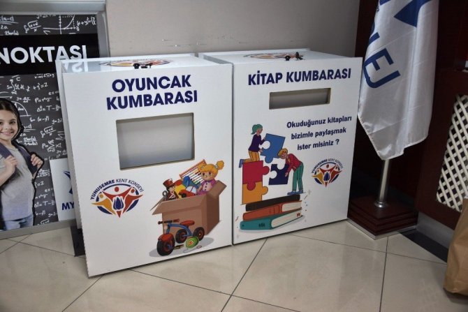 Dünya Çocuk Kitapları Haftası’nda Yunusemre Kent Konseyi ilçe genelinde kitap ve oyuncak seferberliğini ilçedeki özel bir okuldan başlattı. Kampanya kapsamında merkezi okullarda kitap ve oyuncak kumbaraları yerleştirilecek. Yapılacak çalışma kapsamında toplanacak hikaye kitabı, test kitapları, romanlar ve çeşitli kitaplar ile kullanılmış oyuncaklar ihtiyaç sahibi öğrencilere ulaştırılacak. Kolejde gerçekleştirilen programda kumbaraları konulan yerlere kitaplar ve oyuncaklar bırakıldı. Programa Yunusemre Kent Konseyi Başkanı Abdurrahim Arslan, Kent Konseyi Kadın Meclisi Başkanı Füsun Kumbaracı, Çocuk Meclisi Başkanı Hülya Şen ve Yürütme Kurulu üyeleri, okulun koordinatörü Harun Çevik, öğrenci ve öğretmenler katıldı.