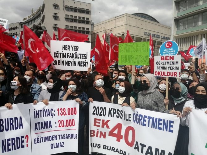 Türk Eğitim-Sen ve Eğitim Bir-Sen'in davetiyle Ankara gelen yüzlerce öğretmen, bu yıl açıklanan 20 bin atama talebinin yetersiz olduğunu belirterek ek 40 bin atama daha talep etti.