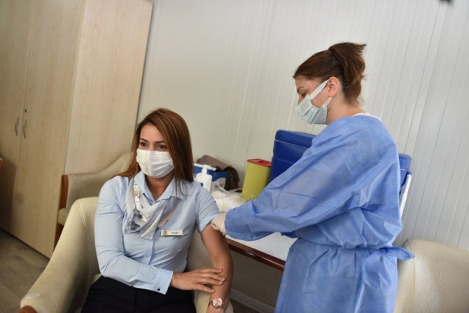 Yüreğir Belediyesi personeli, Sağlık Bakanlığı tarafından başlatılan yerinde korona virüs aşı uygulaması kapsamında aşılanmaya başladı.