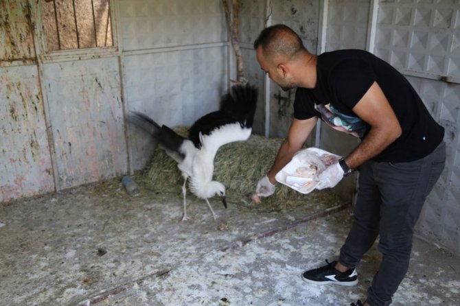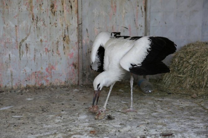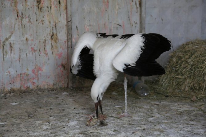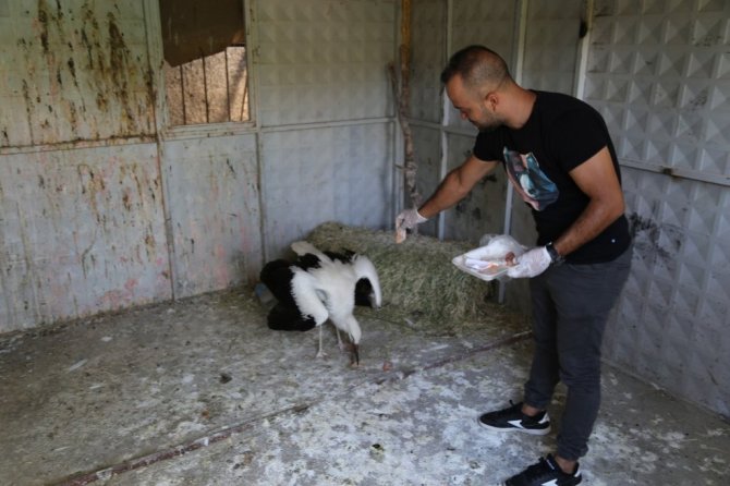 Tunceli'de yuvadan ayrılan ve tek başına beslenemeyen yavru leylek, Doğa Koruma ve Milli Parklar Tunceli Şubesi'nde koruma altına alındı.