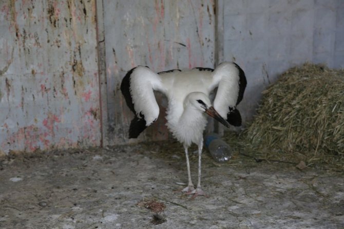 Yuvadan ayrılan yavru leylek koruma altına alındı