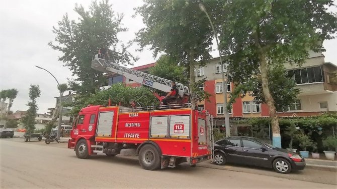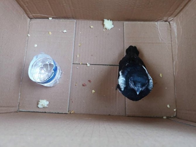Tokat'ta yuvasından yere düşen saksağan yavrusu için itfaiye ekipleri seferber oldu.