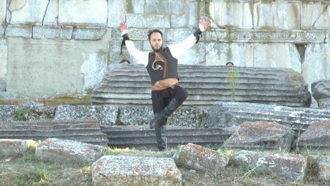 Kütahya Olgunlaşma Enstitüsü, yüz yıllardır süregelen Kütahya zeybeğinin motiflerini yeleklere işleyerek Aizonai Antik Kenti'nde defilesini gerçekleştirdi.