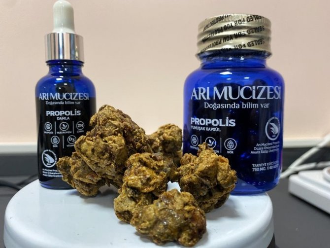 Pandemi döneminde korona virüs ve çeşitli hastalıklardan korunmak isteyen vatandaşlar, bağışıklık sistemlerini güçlendirebilmek için propolise yöneldi. Yıllardır faydası görülen, modern tıpta bilimsel araştırmalara konu olan propolisin korona virüse karşı koruyucu olduğu da görülünce vatandaşların rağbeti arttı. Düzce Üniversitesi ile hem analiz hem de üretim yapan Arı Mucizesi'nin propolis ürünü, 7'den 77'ye herkesin kullanabilmesi için softgel, şurup, damla ve pastil olarak tüketiciye ulaştırılıyor.