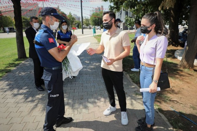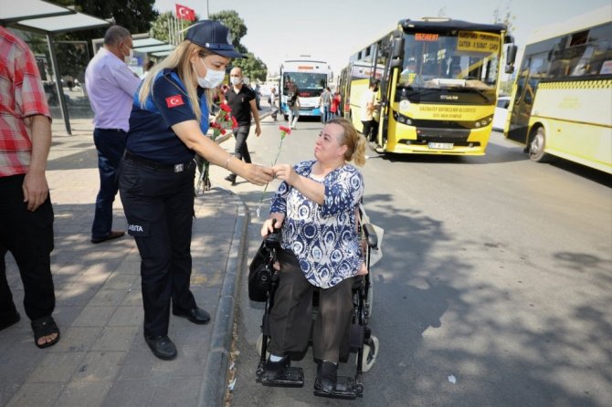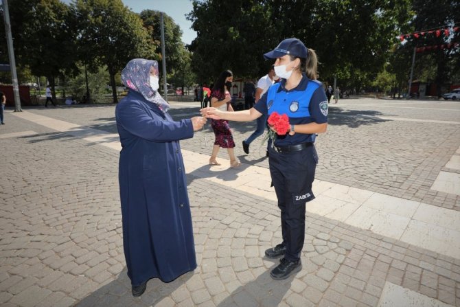 Zabıta ekipleri, vatandaşlara karanfil armağan etti