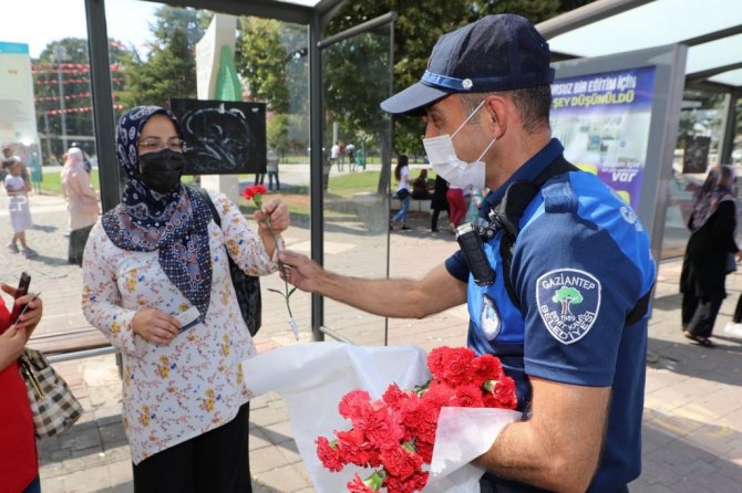 Şehitkamil Belediyesi bünyesinde hizmet veren zabıta ekipleri, Zabıta Haftası etkinlikleri kapsamında vatandaşa karanfil dağıttı.