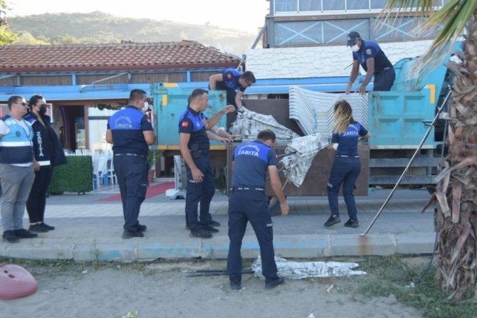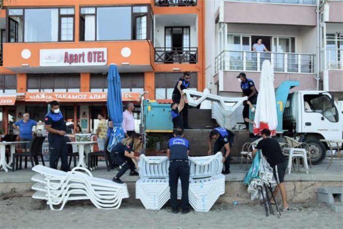 Zabıtadan şezlong fırsatçılığına müdahale