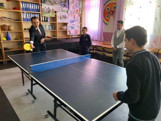 Öğrencilerin Kaymakam Arcaklıoğlu için yaptıkları resimlerin de hediye edildiği sergi açılışı sonrasında sınıflardaki derslere katılan heyet, satranç, masa tenisi gibi sportif faaliyetlere de eşlik ederek öğrenciler ve okul yöneticileriyle sohbetlerde bulundu.