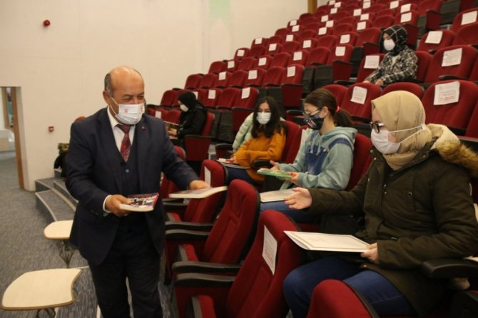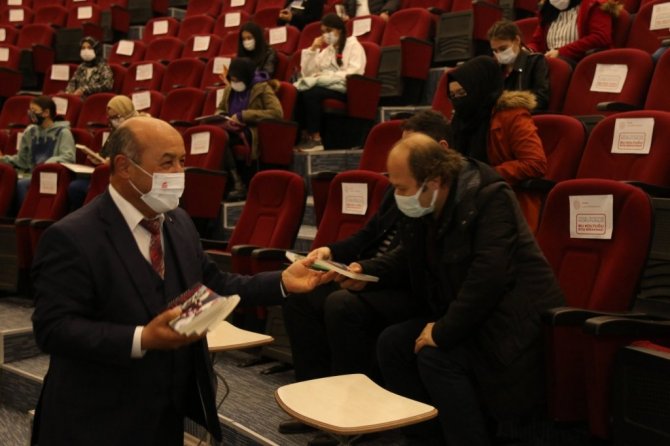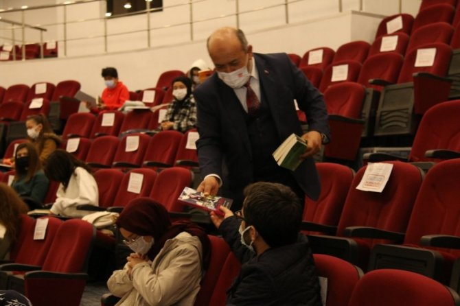 Başyiğit, program sonunda öğrencilere kitap hediye etti.