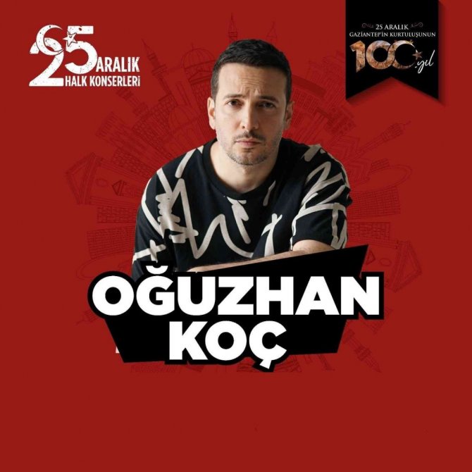 Cumhurbaşkanı Recep Tayyip Erdoğan'ın tensipleriyle Cumhurbaşkanlığı himayelerine alınan Gaziantep'in Kurtuluşu'nun 100'üncü Yılı Etkinlikleri kapsamında Kültür ve Turizm Bakanlığı, Gaziantep Valiliği, Gaziantep'i Geliştirme Vakfı (GAGEV) ve GBB Kültür ve Turizm Daire Başkanlığı iş birliğinde 25 Aralık Halk Konserleri tüm hızıyla sürüyor, ilçelerde süren heyecan şehre taşınıyor. 11 Aralık Cumartesi Günü saat 19.00'da Şahinbey Kapalı Spor Salonu'nda Halk Müziği Sanatçısı Zara ve Oyuncu-Müzisyen Oğuzhan Koç sevilen şarkılarını seslendirecek. Peş peşe sahne alacak şarkıcılar müzikseverlere unutulmaz bir gece yaşatacak.
