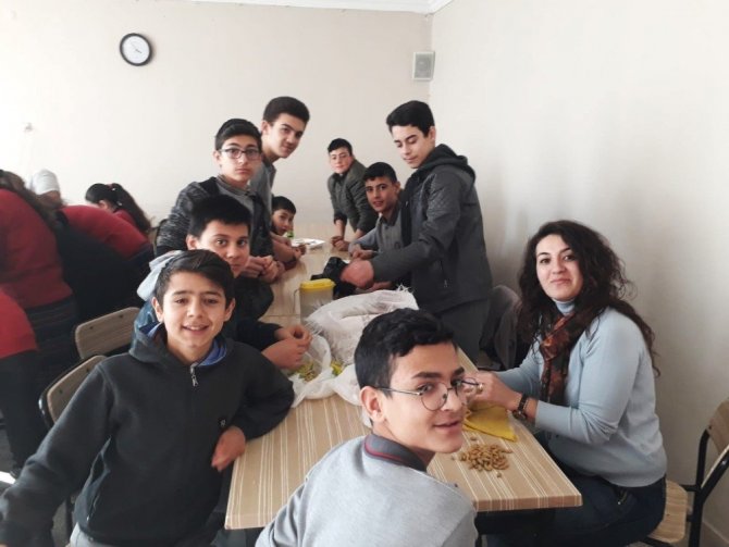 ’81 ilden şanlı bayrağım’ adlı E-twinning projesi kapsamında Manisa’yı temsilen katılan Kırkağaç Bakır Atatürk Hilmi Bakırlı Ortaokulu öğrencileri zeytin çekirdekleri ve yaprakları ile Türk bayrağı tasarladı.