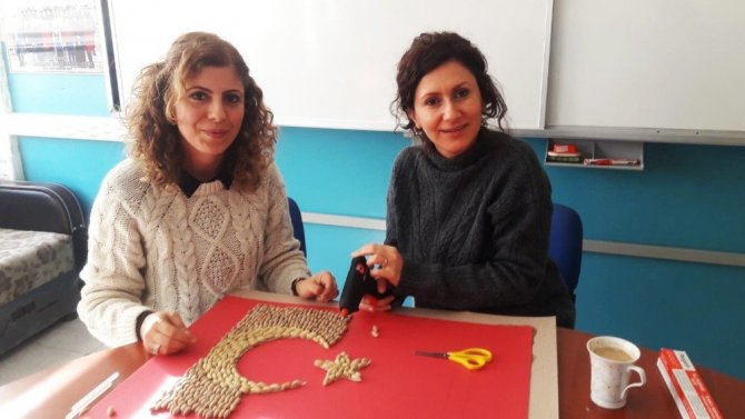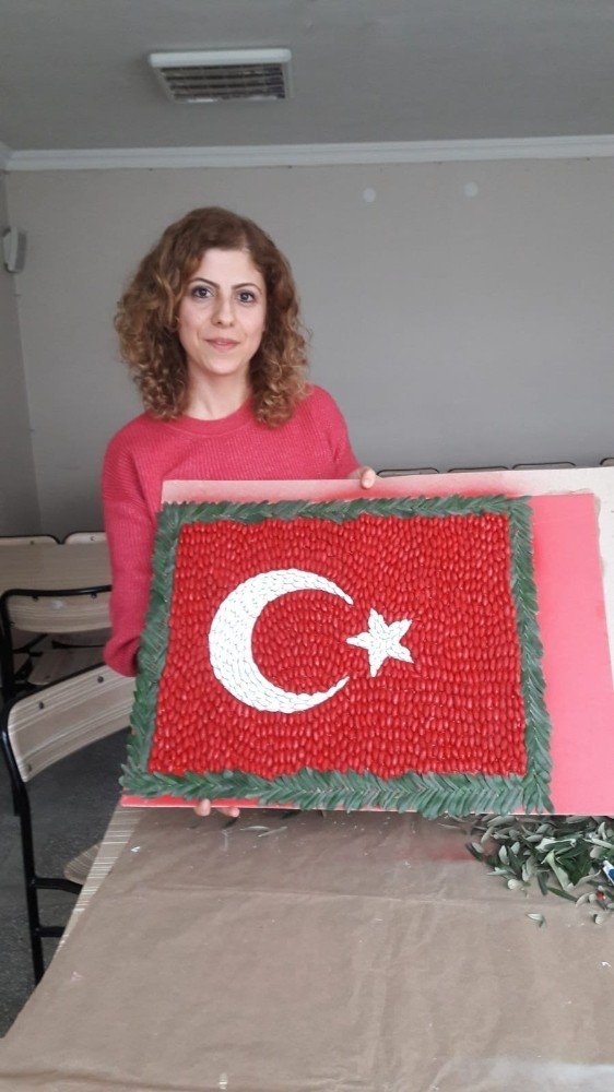 Zeytin çekirdeklerinden Türk bayrağı tasarladılar