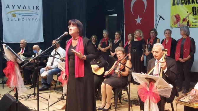 Ayvalık-Küçükköy Halk Müziği Derneği Başkanı Nezihe Baltacı'nın da koro sanatçılarının arasında yer alıp birbirinden güzel türküleri seslendirdiği konser, seyirci ve sanatçıların Türk Bayrakları sallayarak okudukları İzmir Marşı ile sona erdi.