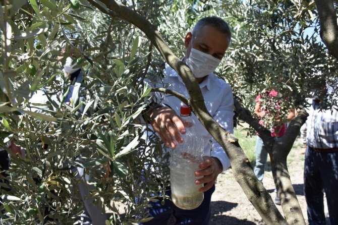 Zeytin Sineğinin, zeytin meyvelerine bıraktığı yumurtaları ve bu yumurtalardan çıkan larva-kurtlarının meyvelerle beslenmesi ile zeytine zarar verdiğini kaydeden Manisa Tarım ve Orman İl Müdürü Metin Öztürk, bu nedenle Zeytin Sineği mücadelesinde entegre mücadelenin çok önemli olduğunu söyledi. Entegre mücadelede amacın en az ilaçlama ile ürünün sağlığını korumak olduğunu dile getirdi. Öztürk, “Bu amaçla besi ve feromon tuzakları ile zeytin sineği yoğunluğu izlenir ve ihtiyaç halinde uygun zamanda ilaçlama yaptırılır. Zeytinyağının kalitesini ve miktarını etkileyen en önemli zararlılardan biri olan Zeytin Sineğine karşı kimyasal mücadele yöntemlerinden biri olan zehirli yem kısmi dal mücadelesi ile biyoteknik mücadele yöntemlerinden biri olan yüzde 2’lik DAP Gübreli Şişe Asımı ile daha etkin bir mücadele yapılacaktır. Alternatif mücadele yöntemlerinden olan bu iki yöntemin yaygınlaşması için, 2020 yılında; Akhisar’da 500 dekar, Soma’da 500 dekar, Kırkağaç’ta 1.905 dekar olmak üzere toplam 2.905 dekar alanda ‘Zeytin sineğine karşı zehirli yem kısmi dal mücadelesi yaygınlaştırılması projesi’ başlatılmıştır. Proje ile ilçelerdeki mahallerde muhtar ve köylülerle doğal sınır alan belirlenmiş, bu alanda yapılacak organizasyon ile köyler de mevcut bir ilaçlama aleti modernize edilerek tüm alanın bir ilaçlama makinası ile ilaçlaması yapılacaktır.” dedi.