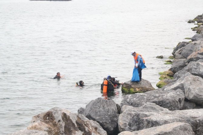 Denizin altından söz eden dalış eğitmeni Polat Çebi, "Burada ne kadar anlatmaya çalışsak bile anlatamayız. Orayı görmek lazım. Aşağıda balıkların bir dünyası var. Balıkların dünyası kirletiliyor. Sadece balıklar değil. Oksijenin yüzde 60'ını denizden alıyoruz. Bu da engellenmiş oluyor. Bu konuda gerçekten bilinçlenmemiz lazım" şeklinde konuştu.