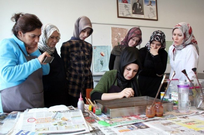 Katılımın ücretsiz olduğu kurslarda hüsn-i hat, minyatür, yağlı boya, tezhip ve ebru zanaatını öğrenen gençler, atölye çalışmaları sayesinde eserlerini sergileme fırsatını yakalarken, dönem sonunda kendilerine verilen sertifikaları almaya da hak kazanıyor.