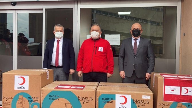 Türk Kızılay Zonguldak Şubesi, yeni tip korona virüsle mücadele kapsamında Atatürk Devlet Hastanesi'ne iki adet solunum cihazı hibesinde bulundu. Hastane Başhekimi Hasan Tosun ile İl Sağlık Müdürü Dr. Ertuğrul Güner de programa katıldı. Kentteki sağlık kuruluşlarına koruyucu malzemelerin hibesinin yanı sıra iki adet solunum cihazı desteği verdiklerini söyleyen Türk Kızılay Zonguldak Şube Başkanı Aydın Ergenç, sağlık çalışanlarına katkılarının devam edeceğini söyleyerek; "Türk Kızılay olarak bugünde Atatürk Devlet Hastanesindeyiz. Sağlıkçılarımız bizim kahramanlarımız. Biz onların yanında olacağımızı söylemiştik, olmayanda devam edeceğiz. Şimdide iki adet solunum cihazını hastanemize bağışlıyoruz" ifadesine yer verdi.