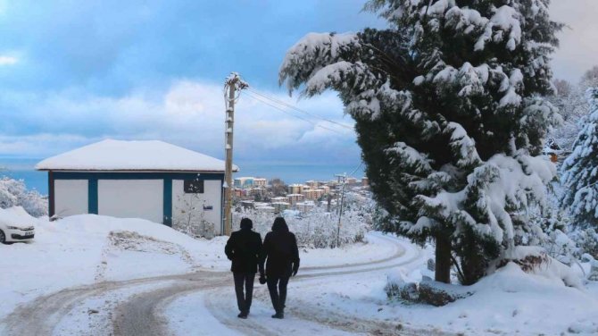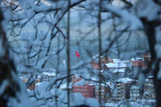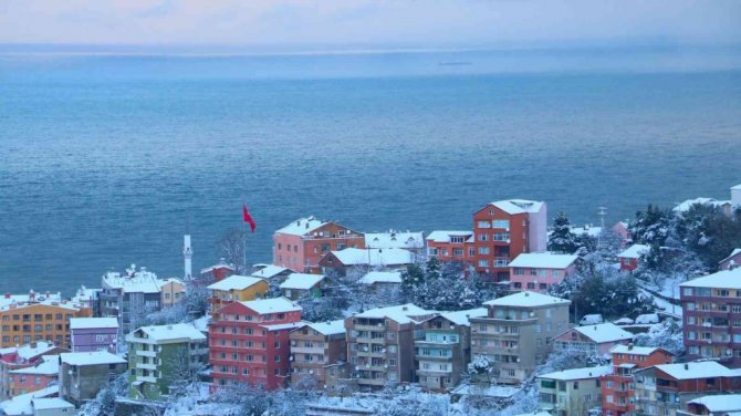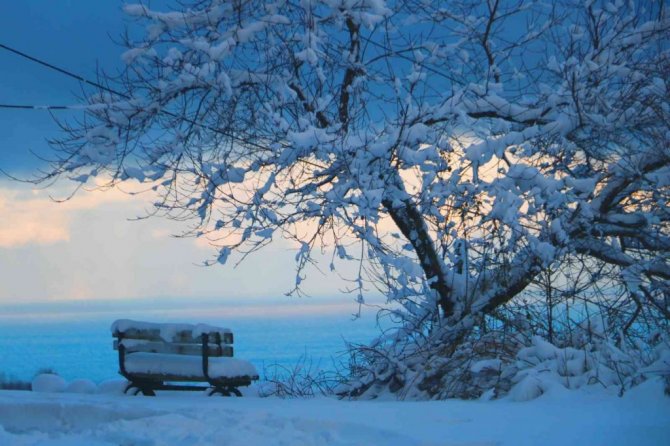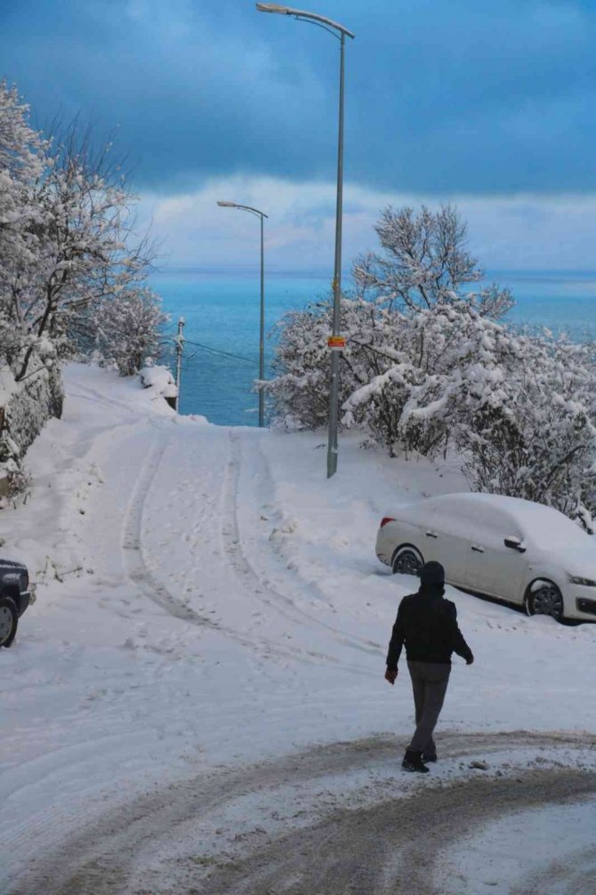 Bir taraftan karla mücadele devam ederken bir taraftan da ortaya kartpostallık görüntüler ortaya çıktı. Kentin yüksek kesimlerinde oluşan manzaralar deniz ile birleşince ortaya seyrine doyumsuz görüntüler çıktı.