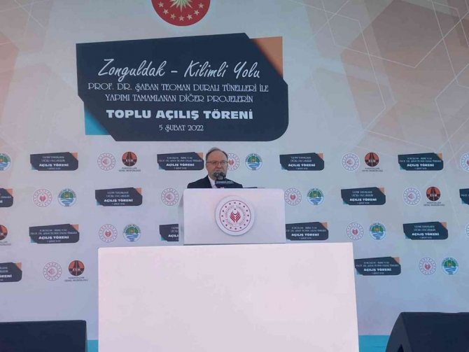 Ardından kürsüye çıkan Zonguldak Valisi Mustafa Tutulmaz, "Zonguldak-Kilimli yolu ve Teoman Duralı tünelleri, Zonguldak-Kilimli arasını 30 dakikadan 5 dakikaya, 11 kilometrelik yolu da 6 kilometreye düşürecek yolun hayırlı olmasını dileyerek "Bugün Zonguldak olarak ilimiz, ülkemiz açısından önemli yatırımları hizmete açarak aziz milletimizin hizmetine sunmanın büyük bir sevinç, heyecan ve mutluluğunu yaşıyoruz. Bu anlamlı günde aramızda bulunarak sevincimizi paylaşmanızdan dolayı sizlere teşekkür eder. İlimize hoş geldiniz diyor saygılarımla selamlıyorum. 2002 yılından buyana ilimiz önemli yatırımlar almış, almaya devam etmektedir. Bu gün Ulaştırma, Enerji, Çevre, Şehircilik, Eğitim, Sağlık, Sanayi, Teknoloji, Tarım, Orman, Yerel Yönetimler ve sosyal hizmetler alanında son 3 yılda tamamlanan 3 milyar değerinde 84 farklı ve önemli projenin resmi açılışını yaparak vatandaşlarımızın hizmetine sunuyoruz. Cumhurbaşkanımızın emir ve talimatlarıyla, sizin de büyük emeği bulunan Filyos Vadisi Projesi'nde yer alan ve tamamlanarak 4 Haziran tarihinde Cumhurbaşkanımızın ilimizi teşrifleriyle hizmete açılan Filyos Limanı ile çalışmaları halihazırda devam eden endüstri ve serbest bölgeler de oluşturacağı yatırım, üretim, istihdam ve ihracatla geleceğe umut vermektedir. Cumhurbaşkanımızın verdiği müjdeyle Zonguldak açıklarında Fatih Sondaj Gemisi'nin bulduğu Filyos'ta karaya çıkacak olan doğalgazla ilimizi yeni enerji üssü ve orta, yüksek teknoloji sektöründe kümelenme merkezi yapacaktır. Alt yapı çalışmalarının süratle devam ettiği Sakarya Gaz Sahası'ndan gelecek olan gazın depolanacağı tesisin çalışmaları devam etmektedir. Bugün açılışı yapılacak olan Zonguldak-Kilimli yolu ve Teoman Duralı tünelleri, Zonguldak-Kilimli arasını 30 dakikadan 5 dakikaya, 11 kilometrelik yolu da 6 kilometreye düşürecek. Trafik akışını da çok rahatlatacaktır. Cumhurbaşkanımızın talimatları doğrultusunda ihalesi yapılan Kilimli-Filyos-Saltukova yolunun tamamlanmasıyla Filyos bölgesinden il merkezinin faydalanması sağlanacaktır. Açılışı gerçekleştirilecek tesislerin hayırlı olmasını diliyorum" dedi.